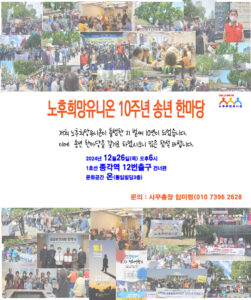 지난 12월 25일(금) 오후 6시 노후희망유니온은 조합원들과 함께 조촐한 10주년 송년 행사를 가졌다.