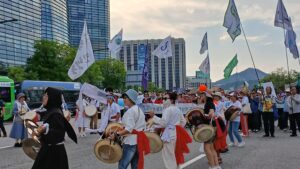 노후희망유니온 기후정의위원회도 깃발 휘날리며 목청껏 기후위기를 알리고 정의로운 기후전환을 함께 요구했다.